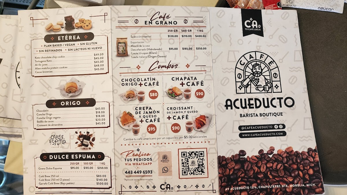 Welcome to Aqueduct Cafe, a hidden gem nestled at Av Acueducto 1276 in Chapultepec Nte., Morelia. This charming cafe is more than just a spot for your daily caffeine fix; it’s an experience. The menu features expertly crafted coffee from distinct grains, showcasing diverse brewing techniques that coffee aficionados will appreciate.